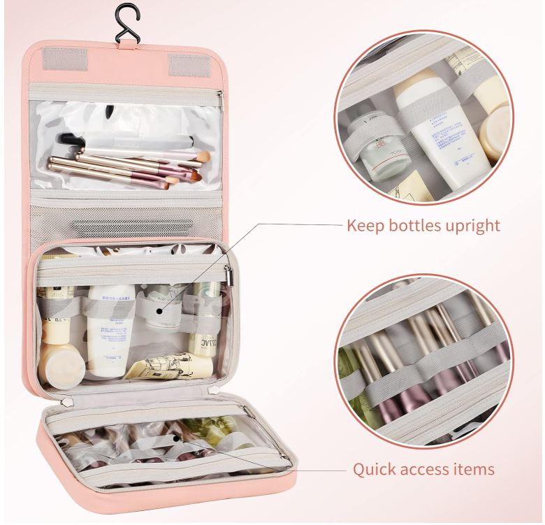 Buzunare multiple: Genți de toaletă, are 3 compartimente separate pentru a menține lucrurile organizate, compartimentul principal cu curele elastice ține lucrurile în poziție verticală și ușor de ținut, exact ceea ce ai nevoie.