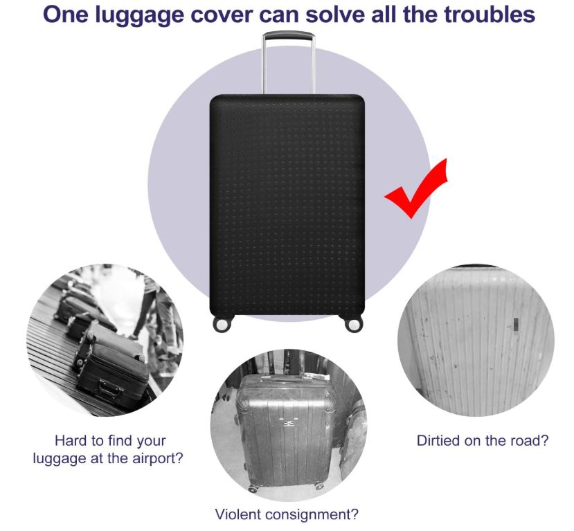 Funcție: Rezistent la praf, super elastic, previne zgârieturile și ușor de curățat, ceea ce ar putea proteja spălarea: această husă de valiză poate fi curățată cu apă pentru a o menține curată. Dacă vă murdăriți după călătorie, îl puteți curăța de vărsări, zgârieturi și multe altele în timpul călătoriei. Husa pentru bagaje de mână ține bagajul departe de aceste cicatrici urâte, astfel încât să își poată menține frumusețea chiar și în călătoriile constante.