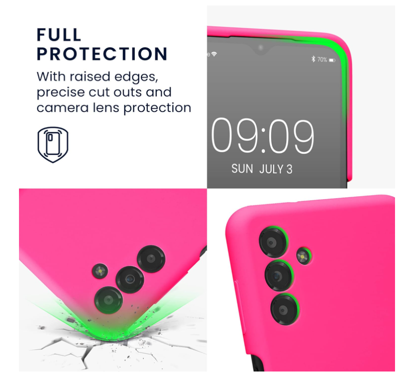 Marginile înălțate ajută la protejarea ecranului, iar o decupare de precizie a camerei adaugă protecție suplimentară a obiectivului