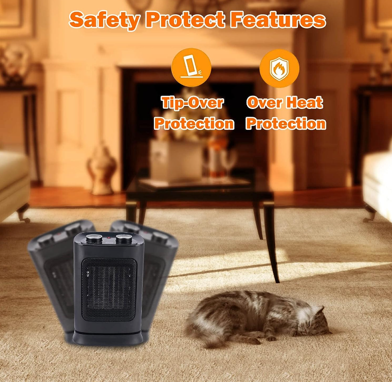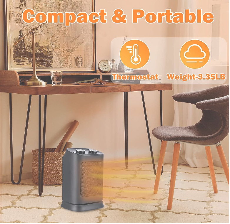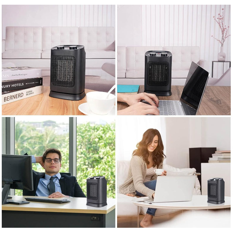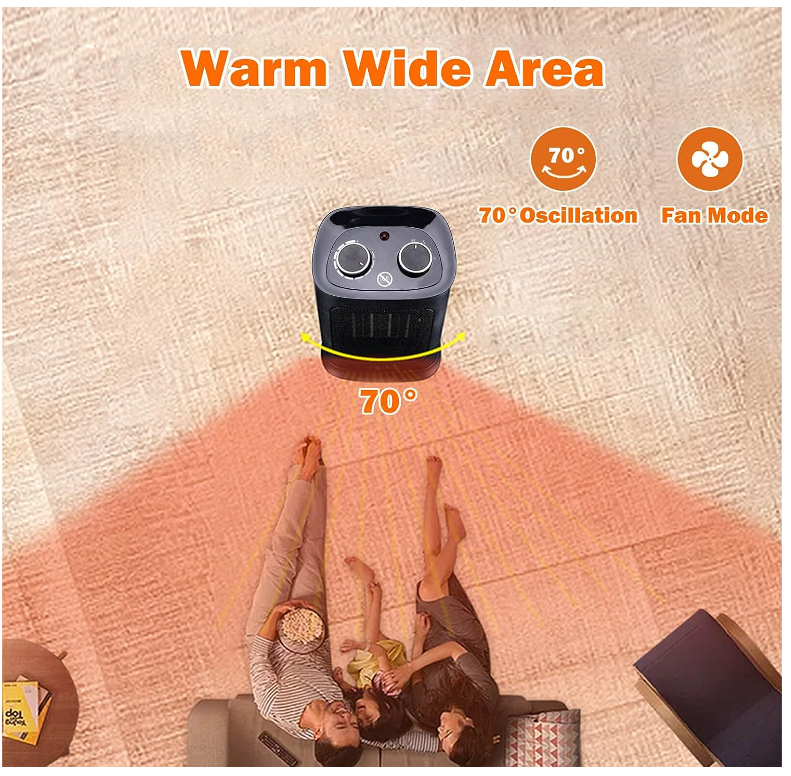 TERMOSTAT OSCILANT ȘI AJUSTABIL 70° - Încălzitorul portabil pentru cameră are o oscilație larg răspândită de 70° pentru încălzirea unei încăperi și spațiu mai mare. Cu termostat reglabil, mini-încălzitorul poate monitoriza temperatura aerului din jur până la o eficiență optimă a încălzirii.