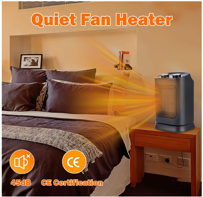 Încălzirea rapidă a încălzirii pentru dormitor-2S încălzire rapidă vă poate menține cald instantaneu în iarna rece. Doar 45 dB voce naturală a vântului în modul înalt, super silentios și vă poate face să dormiți, să citiți și să lucrați bine în iarna rece. Încălzitorul cu energie redusă este portabil și ușor, cu mâner. Puteți duce cu ușurință încălzitorul oriunde.