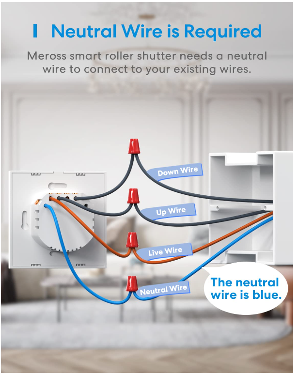 Este necesar un conductor neutru: întrerupătorul ruloului WiFi necesită un conductor neutru pentru instalare. Dimensiunile comutatorului sunt 8 x 8 x 3,5 cm