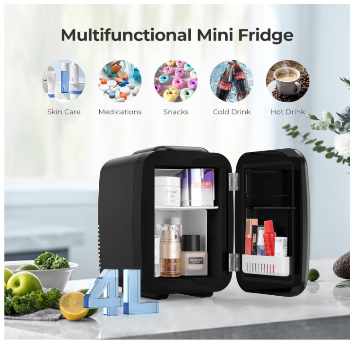Mini-frigider multifuncțional: frigiderul mic Yashe 4L păstrează alimentele, băuturile, cafeaua, apa, băuturile și alte articole la temperaturi optime și poate stoca, de asemenea, lucruri precum îngrijirea pielii, cosmetice, machiaj.