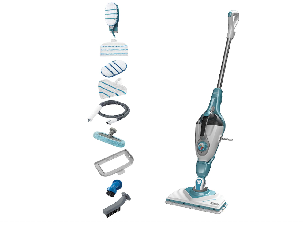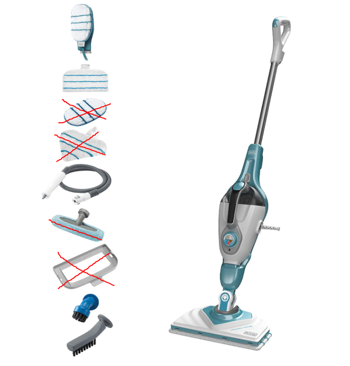 O soluție de curățare versatilă datorită celor 11 accesorii: Articolul este furnizat cu 1 mănușă STEAMITT cu furtun flexibil de 1,5 m, 1 furtun flexibil de abur de 1,2 m, 2 tampoane din microfibră STEAMITT pentru mănuși, 1 racletă mică, 1 capac mic din microfibră, 1 perie mică, 1 perie specială pentru chit, 1 tampon dreptunghiular din microfibră, 1 tampon din microfibră delta și 1 cadru adaptor pentru covor