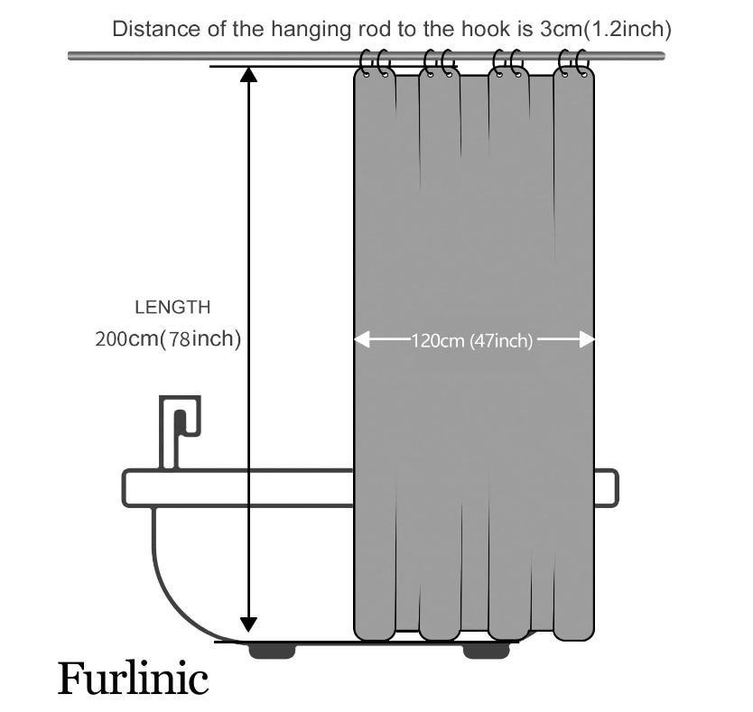 Informatii de baza: Latime 120cm x Inaltime 200cm. Fiecare pachet include 1 perdea de duș și 8 cârlige.