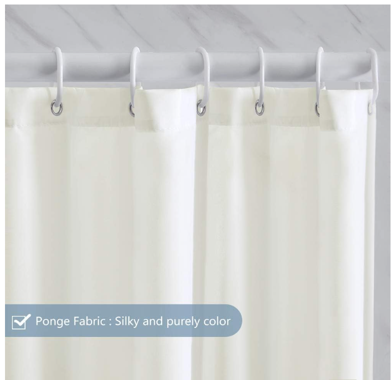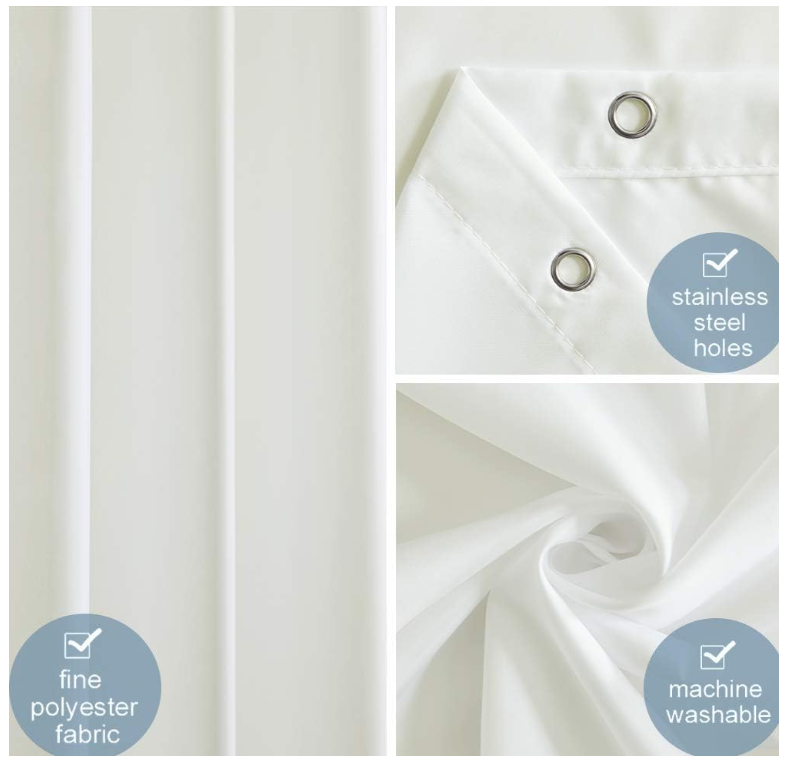 Întărire: în primul rând, stratul impermeabil îmbunătățește rezistența țesăturilor din poliester la apă. În al doilea rând, manșoanele sunt întărite cu inele de cupru pentru a evita ruperea. Partea de jos a perdelei de duș are o bandă de greutate.