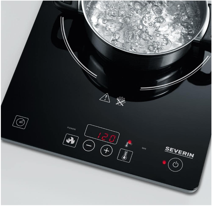 Detalii produs – SEVERIN KP 1071 Plită portabilă cu inducție, 2000 W, 10 niveluri de putere reglabile între 60 °C și 240 °C, cronometru de 180 de minute cu semnal acustic, consum redus