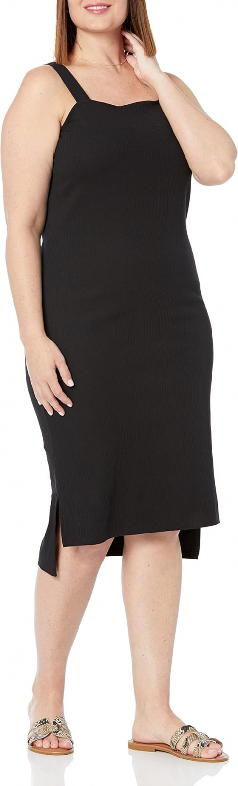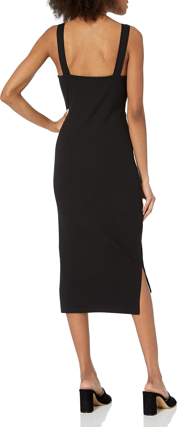 Această rochie midi luxoasă cu nervuri are un tiv înalt/jos și o potrivire care îmbrățișează corpul