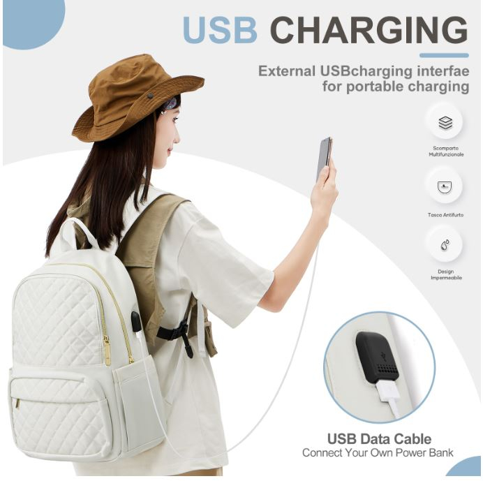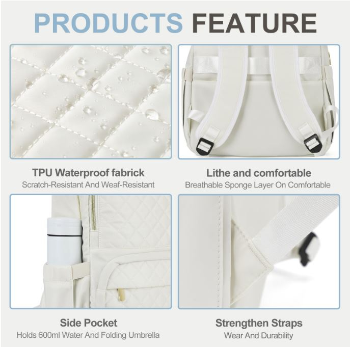 Acest rucsac pentru laptop pentru femei are mai multe compartimente: compartimentul principal are un compartiment mare, interiorul are un compartiment pentru computer, poate ține laptopuri de 15,6 inch și alte necesități zilnice, cum ar fi mape A4, reviste, tablete, încărcătoare, telefoane mobile și haine. Compartimentul frontal mare poate găzdui cărți și documente de afaceri, creioane, carduri, caiete, portofele, ochelari de soare, etc.