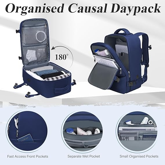 Un rucsac de călătorie mic ideal: Deschiderea în stilul unei valize permite înregistrarea ușoară; curele pentru bagaje pentru a vă ușura mâinile și umerii; Cu material hidrofug pentru a vă menține lucrurile uscate în zilele ploioase; Cu orificiu pentru cablu pentru a asculta muzică sau pentru a vă încărca telefonul în timpul călătoriei; Cu buzunare organizate pentru a vă păstra lucrurile ordonate;