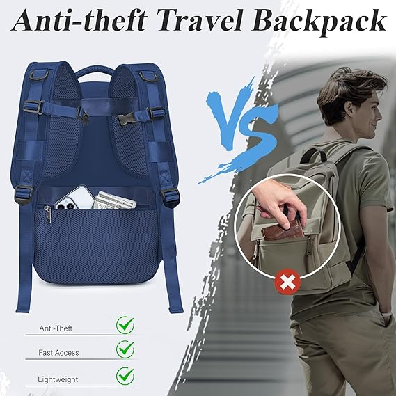 Rucsac antifurt pentru Ryanair: masurat dupa umplere: 40 x 20 x 25 cm, dimensiune geanta: 40 x 18 x 25 cm, capacitate: 20 litri. Măsurată după umplere, geanta de călătorie îndeplinește cerințele companiilor aeriene Ryanair, evitați să plătiți taxe suplimentare atunci când zburați cu Ryanair. Acest rucsac de voiaj a fost echipat cu un buzunar antifurt pe spate. Puteți pune cu ușurință obiectele de valoare sau le puteți scoate din această geantă
