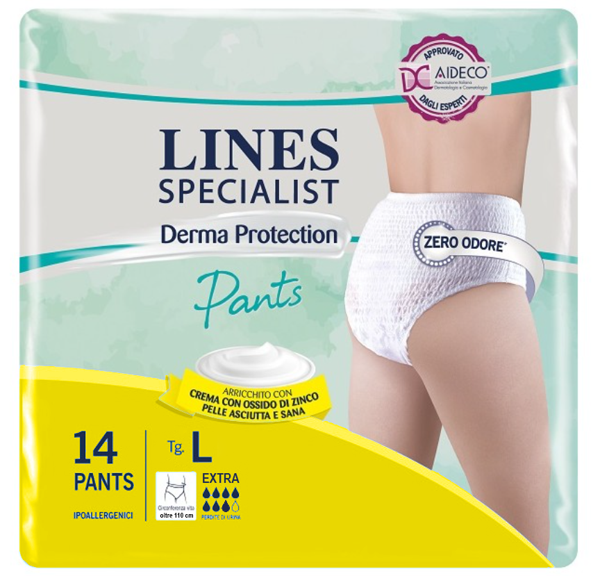 Ambalate în seturi de 14 bucăți, Scutecele Lines Specialist Derma Protection sunt practice și ușor de utilizat. Cu un ambalaj compact, acestea sunt perfecte pentru transport și depozitare, asigurând disponibilitatea lor în orice moment și oriunde este nevoie. O soluție eficientă, comodă și discretă pentru menținerea calității vieții în ciuda incontinenței.