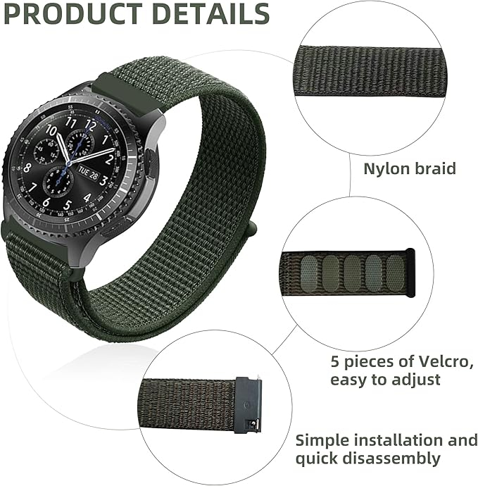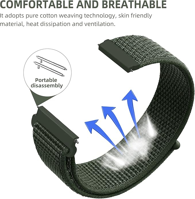 Material: Fabricat din țesătură de nailon, respirabil și prietenos cu pielea, durabil și confortabil de purtat. Materialul fin și rezistent face ca cureaua să fie mai puțin predispusă la rupere. Materialul ușor reduce tensiunea fără a afecta mișcarea sau antrenamentul. Puteți purta această brățară tot timpul anului.