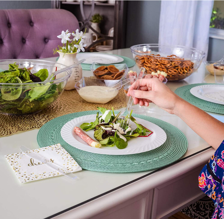 Practic: tacâmurile din plastic sunt ușor de curățat și reutilizabile, pentru o curățare rapidă și eficientă după eveniment și se potrivesc perfect cu alte tacâmuri și veselă din plastic. Practic si lavabil. Setul de tacâmuri reutilizabile este mai economic.
