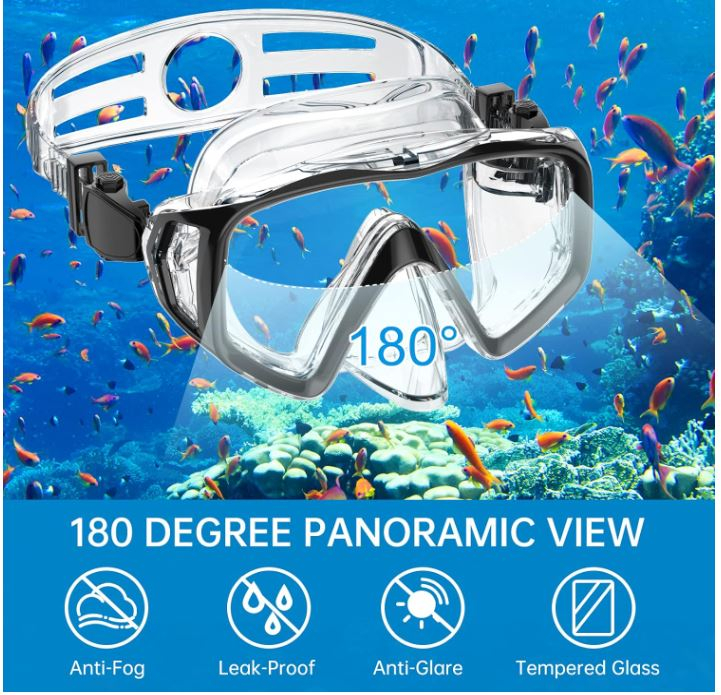 Ochelari de snorkel din sticlă securizată anti-aburire: masca de snorkel are o lentilă din sticlă securizată cu vedere panoramică la 180° pentru snorkeling, înot și scufundări. Ochelari de scufundări cu design ergonomic pentru o potrivire maximă cu diferite forme ale feței, mai confortabili de purtat și o etanșare mai puternică; fusta este fabricată din silicon alimentar moale, lichid, transparent și oferă o vizibilitate ultra. Veți avea o experiență subacvatică cristalină!