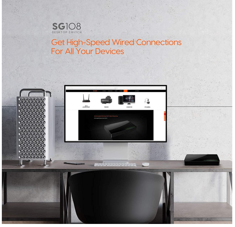 SG108 este un comutator Gigabit Ethernet (10/100/1000 Mbps) cu performanță ridicată și design desktop mini cu 8 porturi, este dedicat cererii de transfer de mare viteză, cum ar fi școli, birouri de afaceri mici, întreprinderi mici și alte locuri mici.
