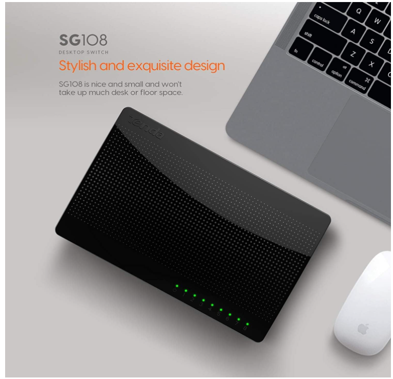 Comutatorul ethernet Tenda cu 8 porturi este atât de mic și mic încât nu va ocupa mult spațiu pe birou sau pe perete. Cu un design elegant, puteți plasa comutatorul de rețea oriunde doriți și vă puteți deplasa în mod flexibil.