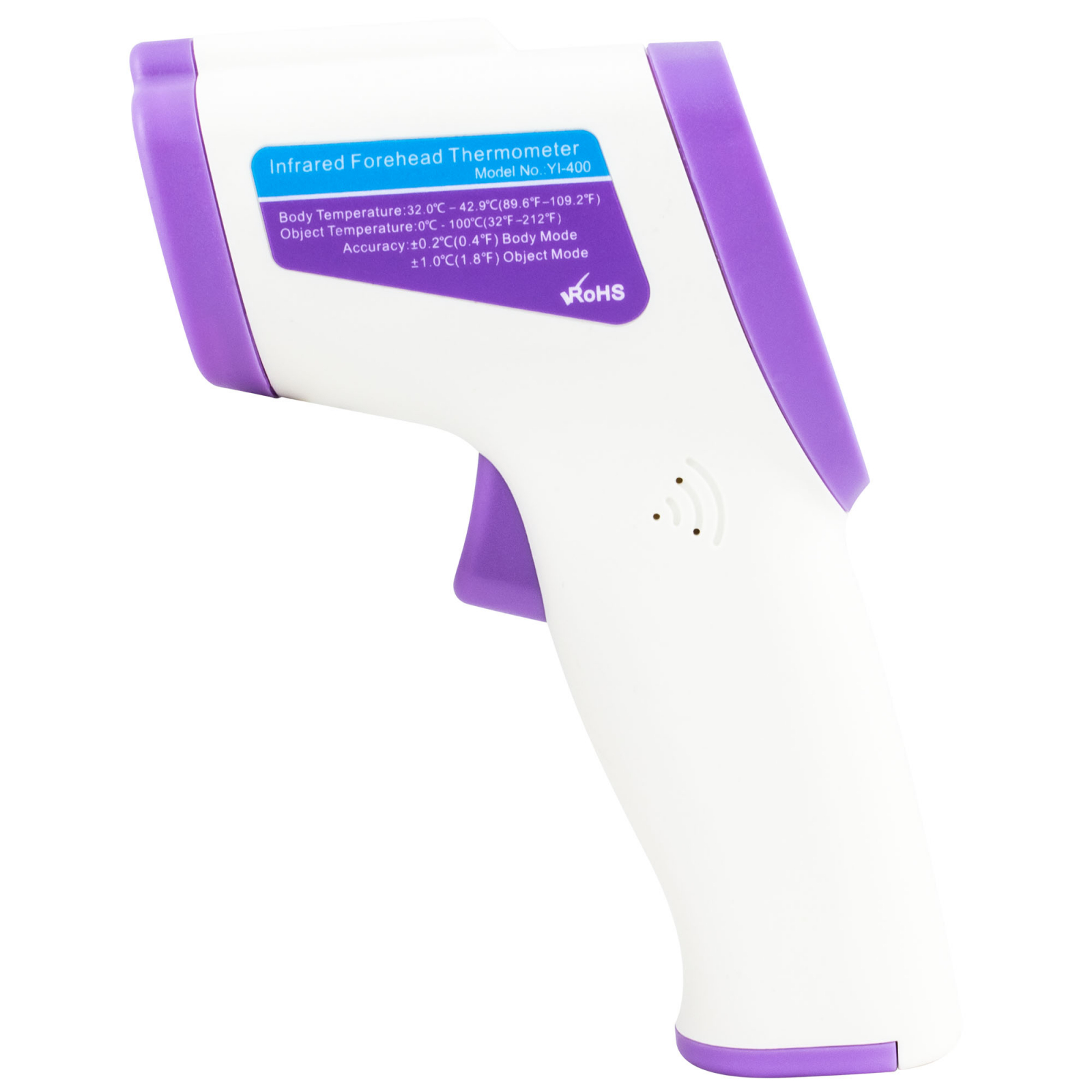 Termometrul non-contact cu infraroșu Zass ZIT 01, model YI-400, este echipat cu un afișaj LCD și un indicator luminos în 3 culori, care variază în funcție de temperatura măsurată. Acesta dispune de o memorie cu capacitate maximă de 32 de măsurători, precum și de o alarmă. Funcționează cu 2 baterii tip AAA și este disponibil în culoarea alb/mov. RH: ≤85%, ATM: 70kpa-106kpa