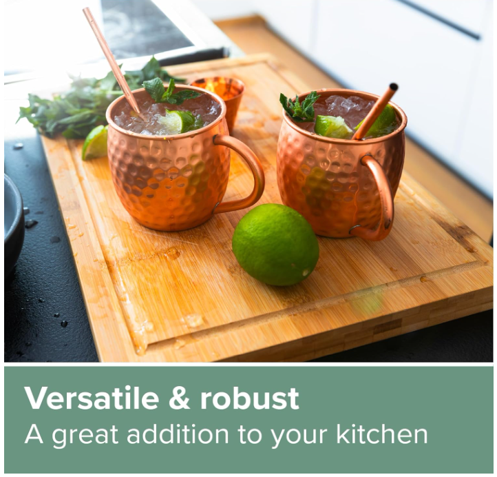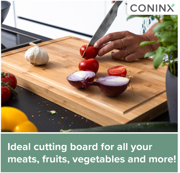 Păstrați-vă cuțitele ascuțite, datorită caracteristicilor perfecte ale plăcii de lemn ale plăcii de tocat mari Coninx cu canelură pentru suc. Mai bună decât blocurile de tocat din plastic, această placă de tăiat din lemn de bambus vă salvează cuțitele chiar și după o utilizare intensă!