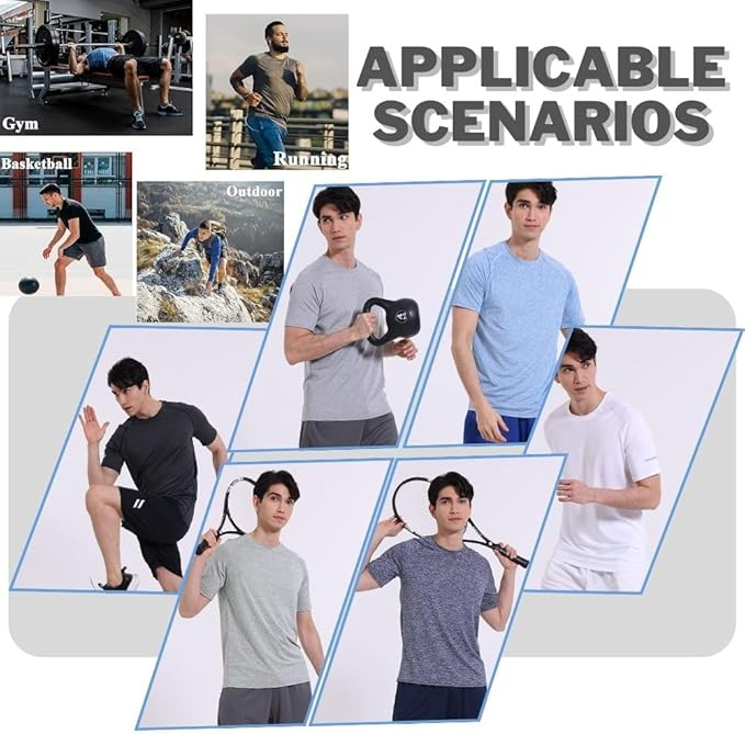 Aceste tricouri pentru bărbați au guler rotund și cusături plate pentru a reduce frecarea și a îmbunătăți confortul, astfel încât să vă puteți mișca confortabil și liber, fără restricții.