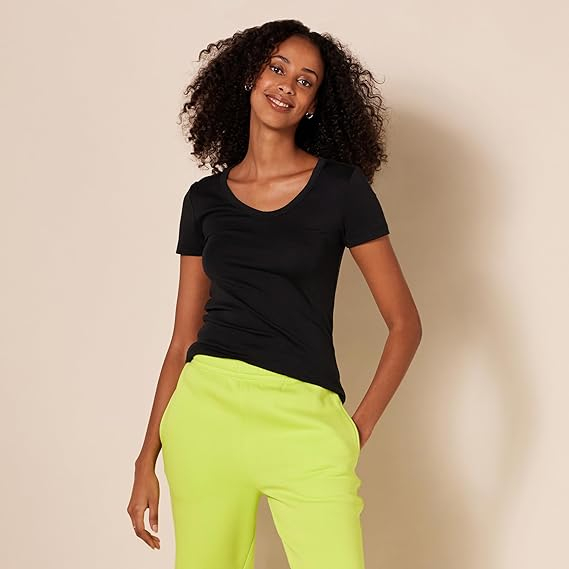 DETALII - Prezintă un decolteu în V clasic și mâneci scurte pentru un stil relaxat și fără efort.