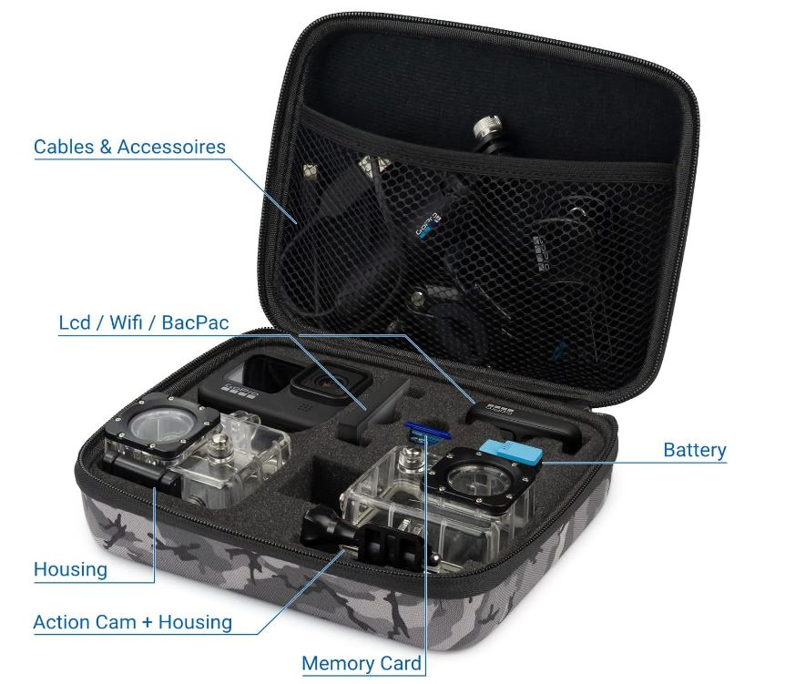 Inserție de spumă decupată pentru camera de acțiune GoPro și accesorii