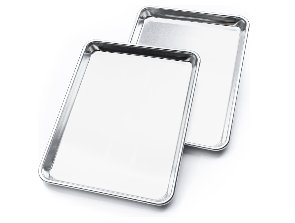 Bucurați-vă de coacere de top cu aceste tăvi de copt de 1/4. Coaceți, grătar și afumați pentru mâncăruri delicioase cu acest set de 2 tăvi mici pentru cuptor. Coaceți cu ușurință pâine proaspătă, biscuiți și prăjituri.