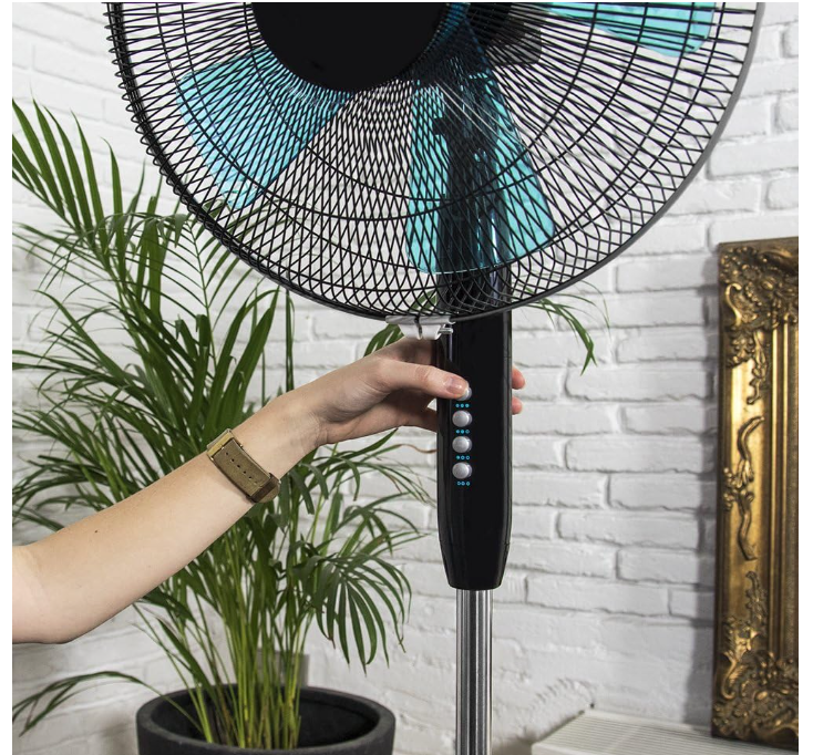 Are 3 viteze (joasa, medie, mare) cu care intensitatea fluxului de aer poate fi reglata la nevoile respective. De asemenea, îi putem regla înălțimea de la 110 la 130 cm datorită tijei telescopice reglabile