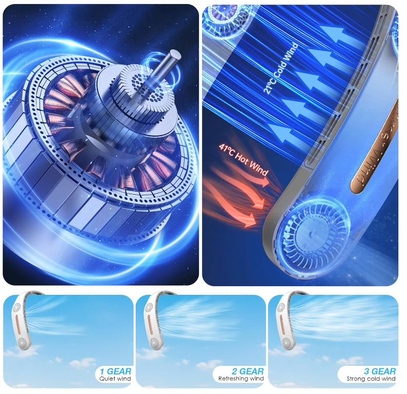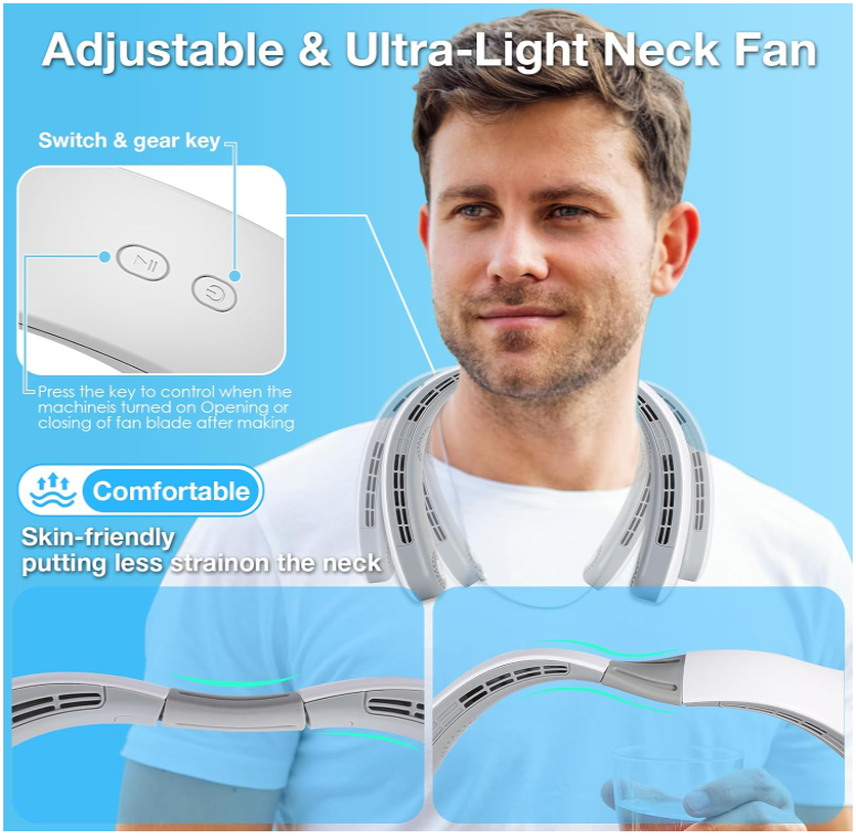 Confort perfect: ventilatorul personal pentru gât îți lasă mâna liberă, astfel încât să-l poți folosi oriunde, de exemplu în bucătărie, în birou, în bucătărie. Ventilatoarele pentru gât sunt, de asemenea, un cadou grozav pentru familia ta.